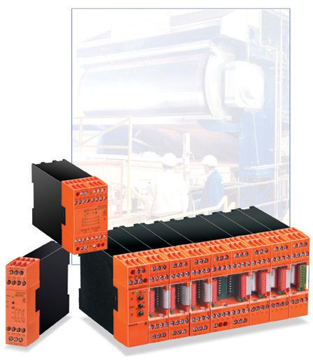 Input modules with freely selectable safety functions can be assigned to different output modules. An optional field bus connection allows system status visualization.