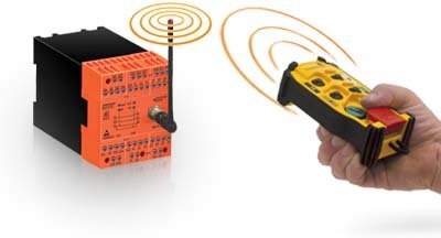 SAFEMASTER®W consists of a light-weight ultra-compact hand-held transmitter and a receiver with safety-related outputs. Signals are transmitted via both radio transmission and also infrared radiation. This ensures that the user of the hand-held transmitter can only start systems which are in his/her view.